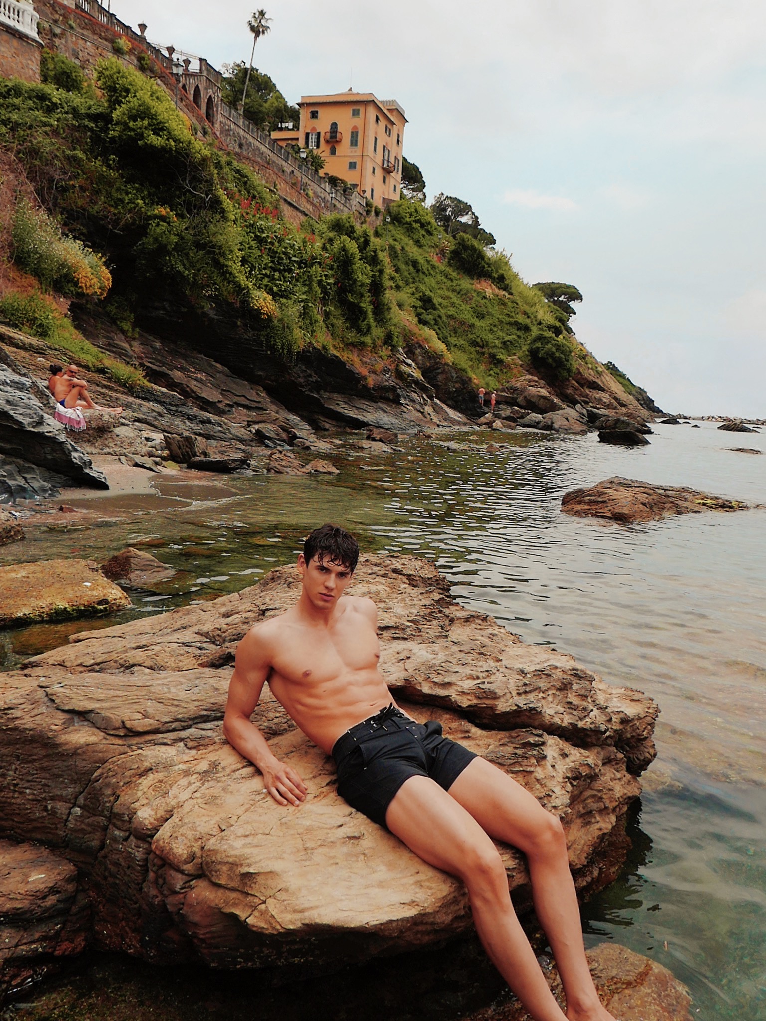 짧은 기장과 타이트한 핏 등 다양한 1960년대 디자인 요소들이 강조된 보드숏입니다.